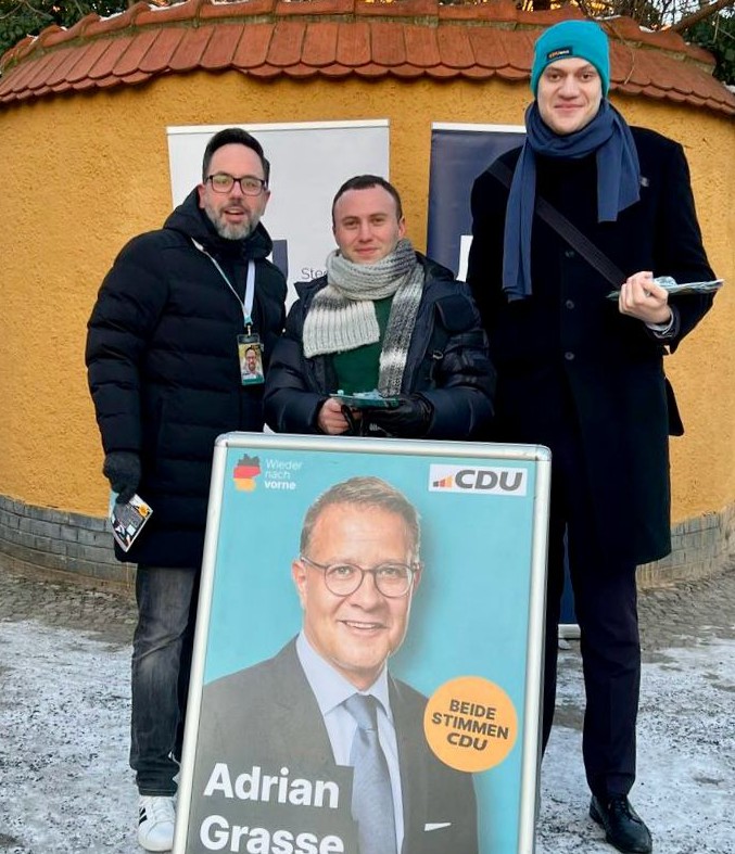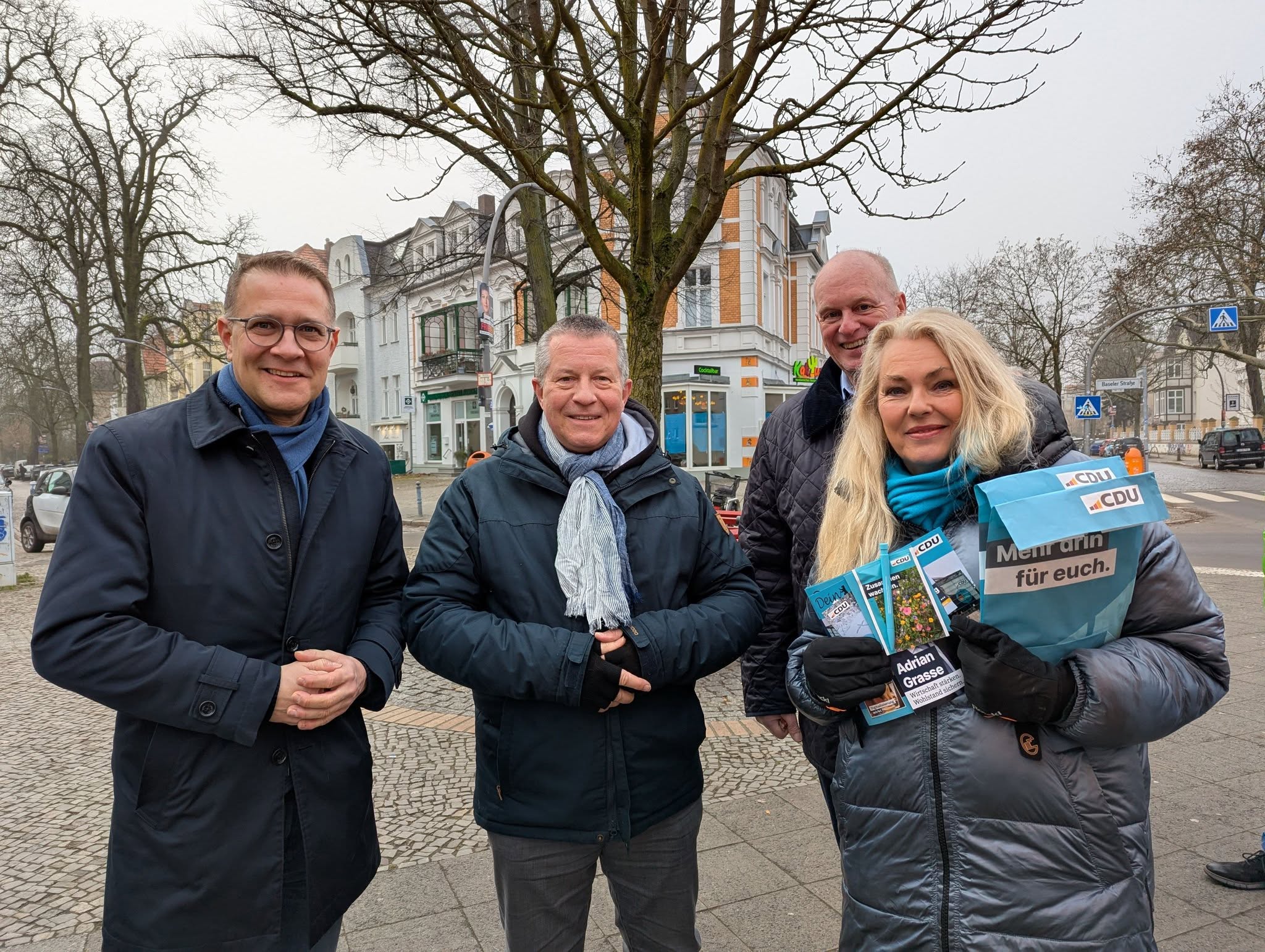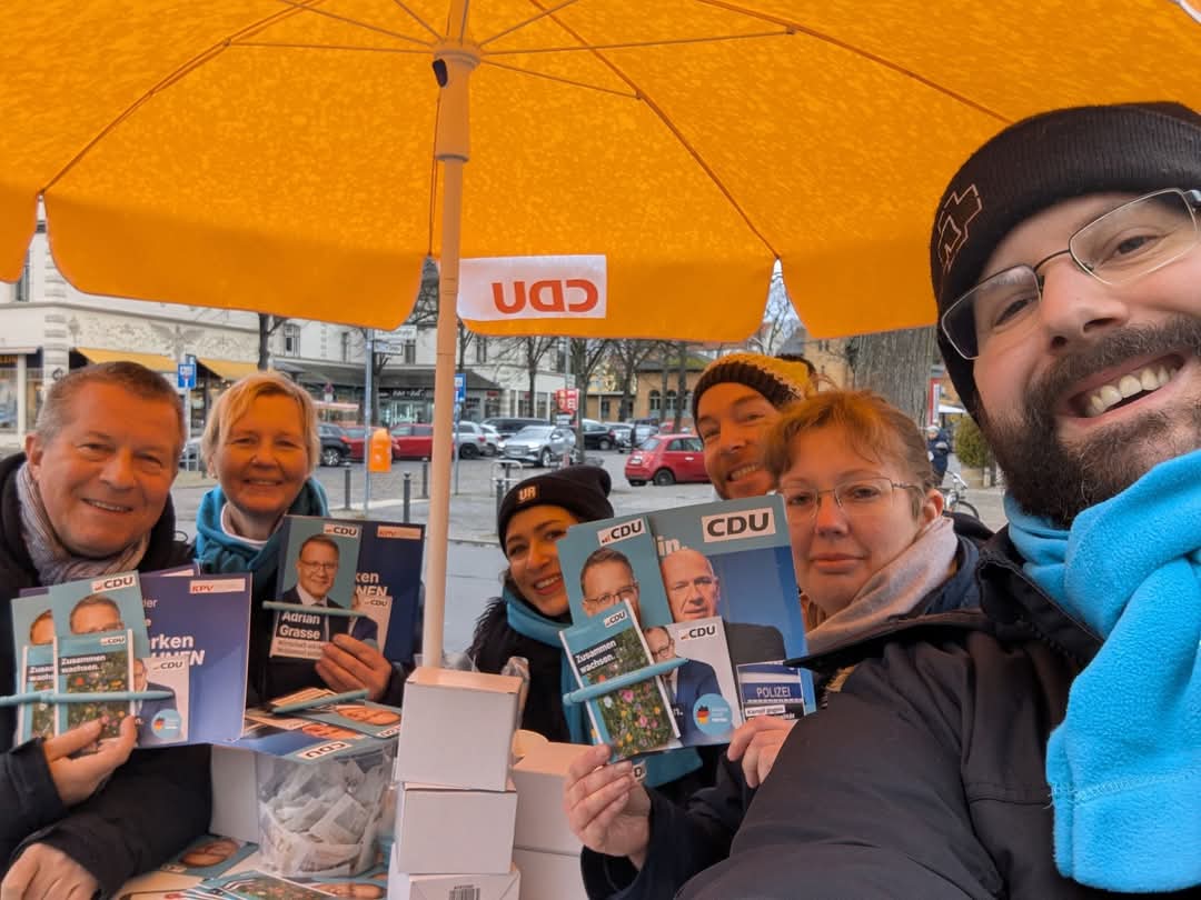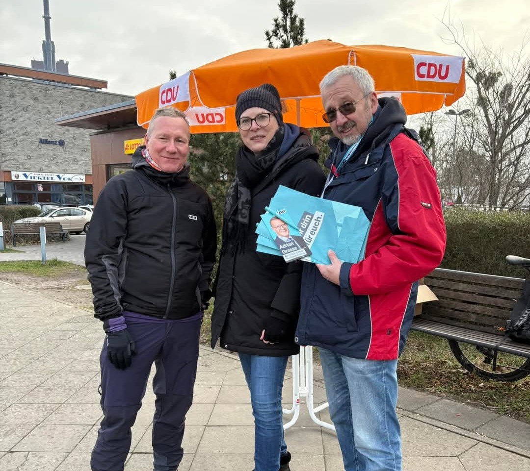 Auch am 25. Januar 2025 haben wir wieder im Schweizer Viertel und in Lichterfelde West für unseren Bundestagskandidaten Adrian Grasse und für Ihre Stimmen für die CDU geworben. Kommen Sie samstags vormittags gerne vorbei und abonnieren unsere Kanäle, zum Beispiel Facebook und Instagram. Jetzt ist auch unser stellvertretender Vorsitzender unter jens.hoffmann.2025 auf Instagram zu finden. Besuchen Sie uns gerne!