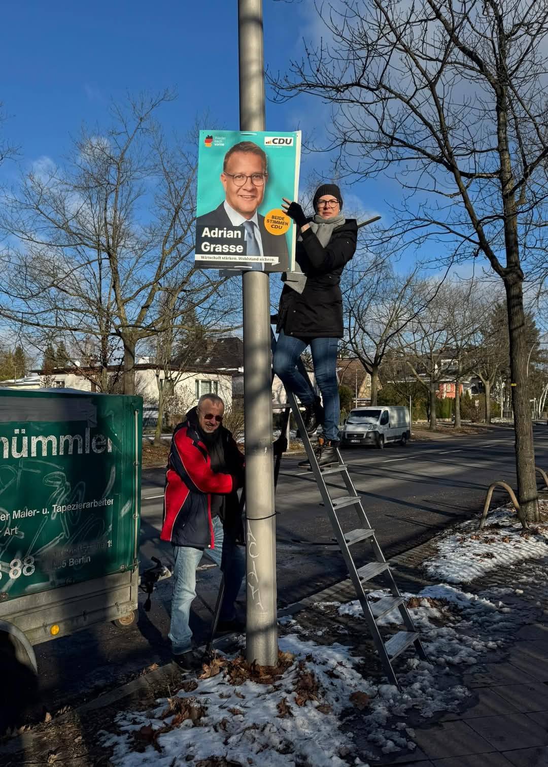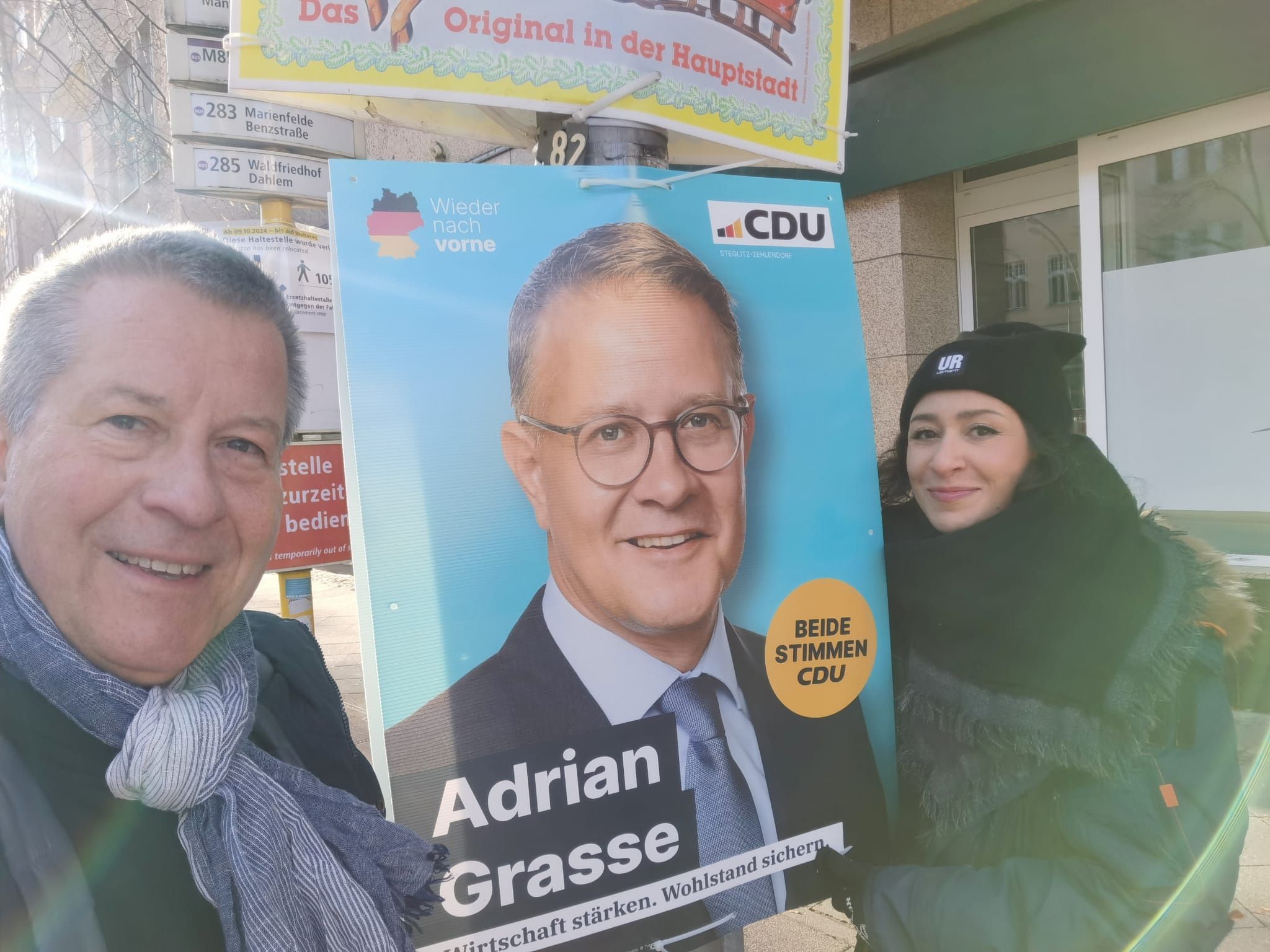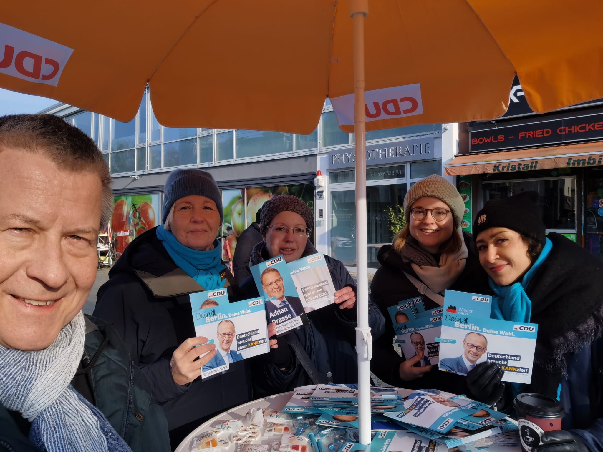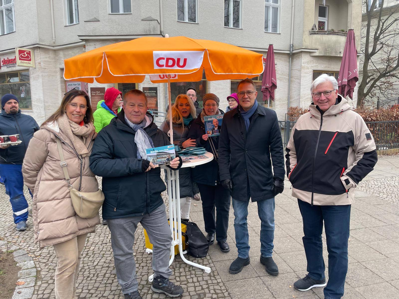 Auch am 25. Januar 2025 haben wir wieder im Schweizer Viertel und in Lichterfelde West für unseren Bundestagskandidaten Adrian Grasse und für Ihre Stimmen für die CDU geworben. Kommen Sie samstags vormittags gerne vorbei und abonnieren unsere Kanäle, zum Beispiel Facebook und Instagram. Jetzt ist auch unser stellvertretender Vorsitzender unter jens.hoffmann.2025 auf Instagram zu finden. Besuchen Sie uns gerne!