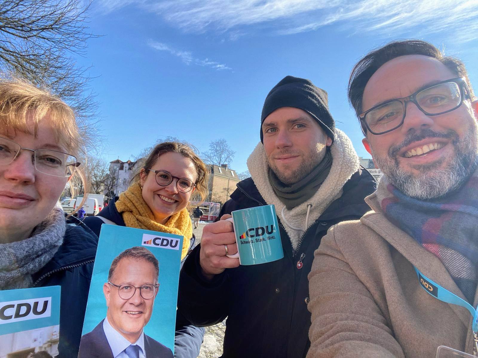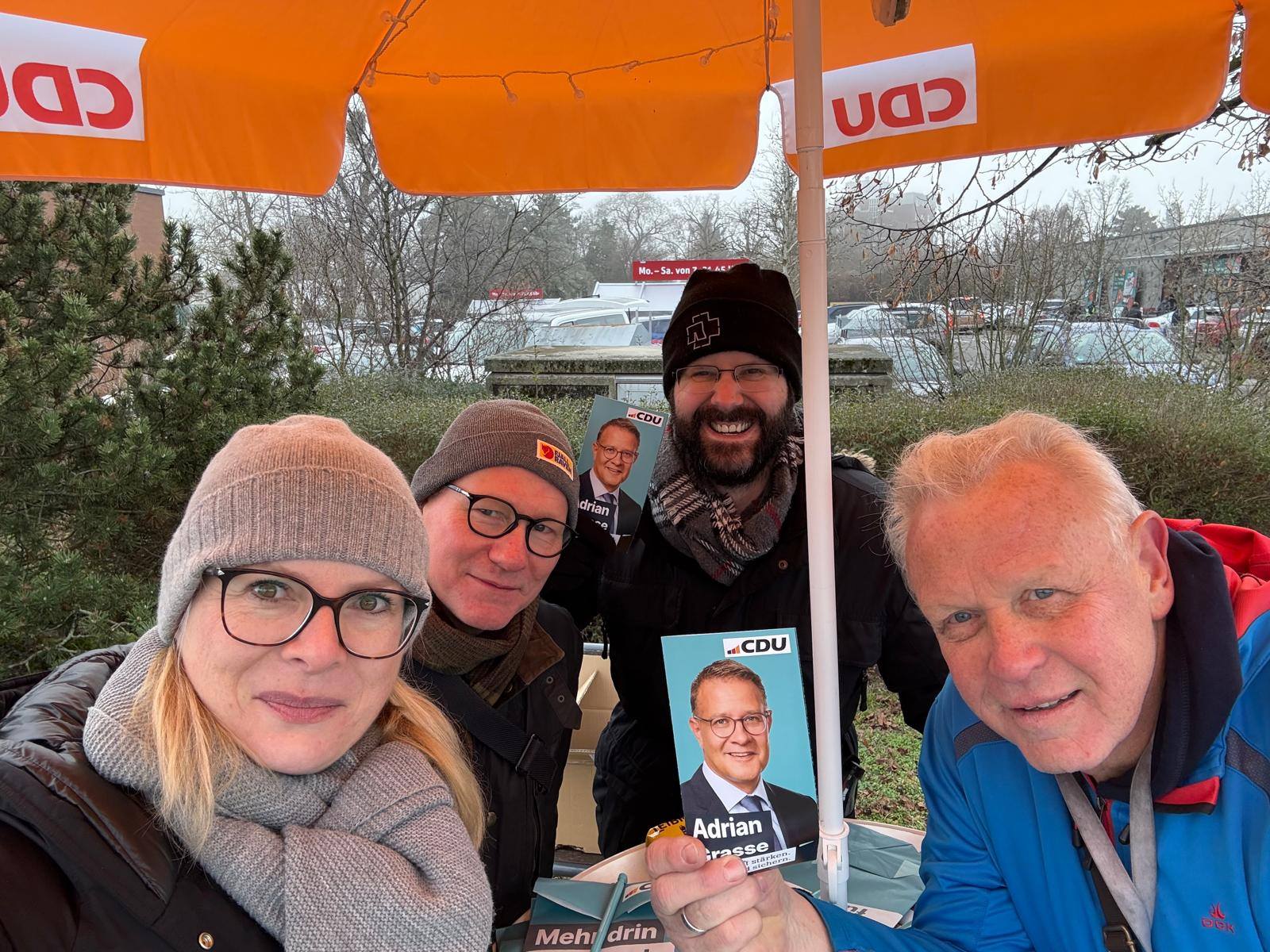 Großer Andrang, fröhliche Stimmung und viele gute Gespräche am 18. Januar 2025 an unseren Ständen im Schweizer Viertel und in Lichterfelde West - mit unserem Bundestagskandidaten Adrian Grasse und spontanem Besuch am Stand von zwei CDU-Mitgliedern aus Rheinland-Pfalz
