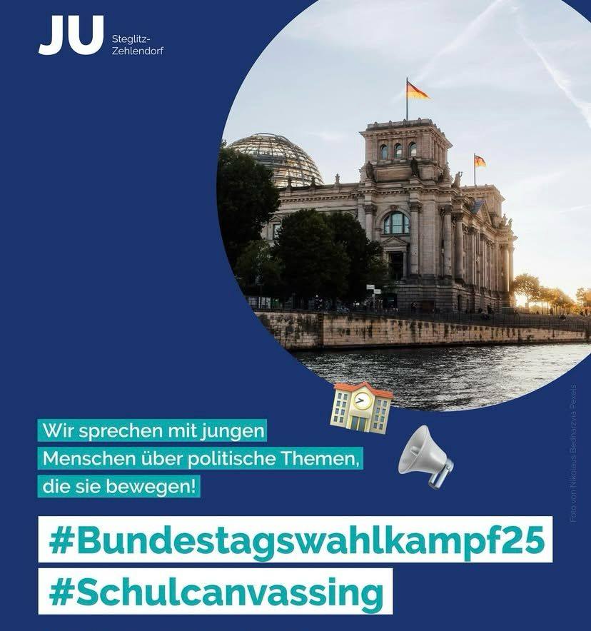 Vielen Dank an unsere Junge Union Steglitz-Zehlendorf, die zusammen mit unserem stellvertretenden Ortsvorsitzenden Jens Hoffmann morgens am 17. Februar am Goethe-Gymnasium mit den Schülerinnen und Schülern ins Gespräch kam beim Schulcanvassing zur Bundestagswahl.