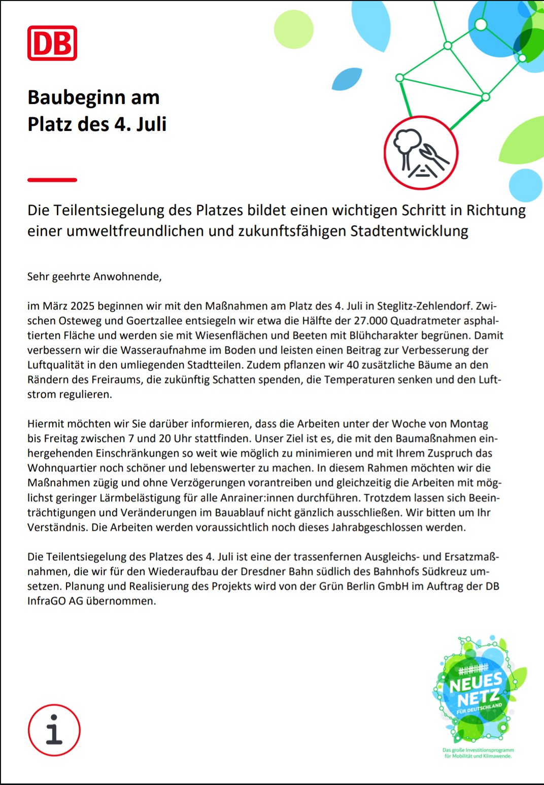 Der Umbau des Platz des 4. Juli beginnt in diesem Monat, März 2025, und soll am Ende des Jahres 2025 abgeschlossen sein. Beeinträchtigungen für die Anwohnerinnen und Anwohner können nicht ausgeschlossen werden. Lesen Sie hier die aktuellen Informationen...