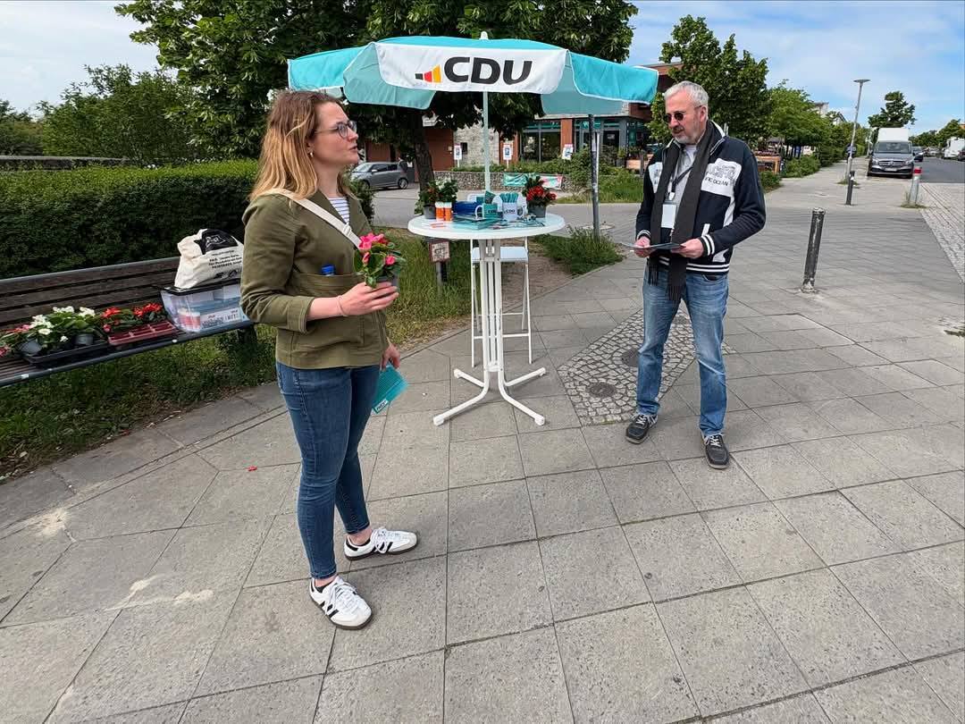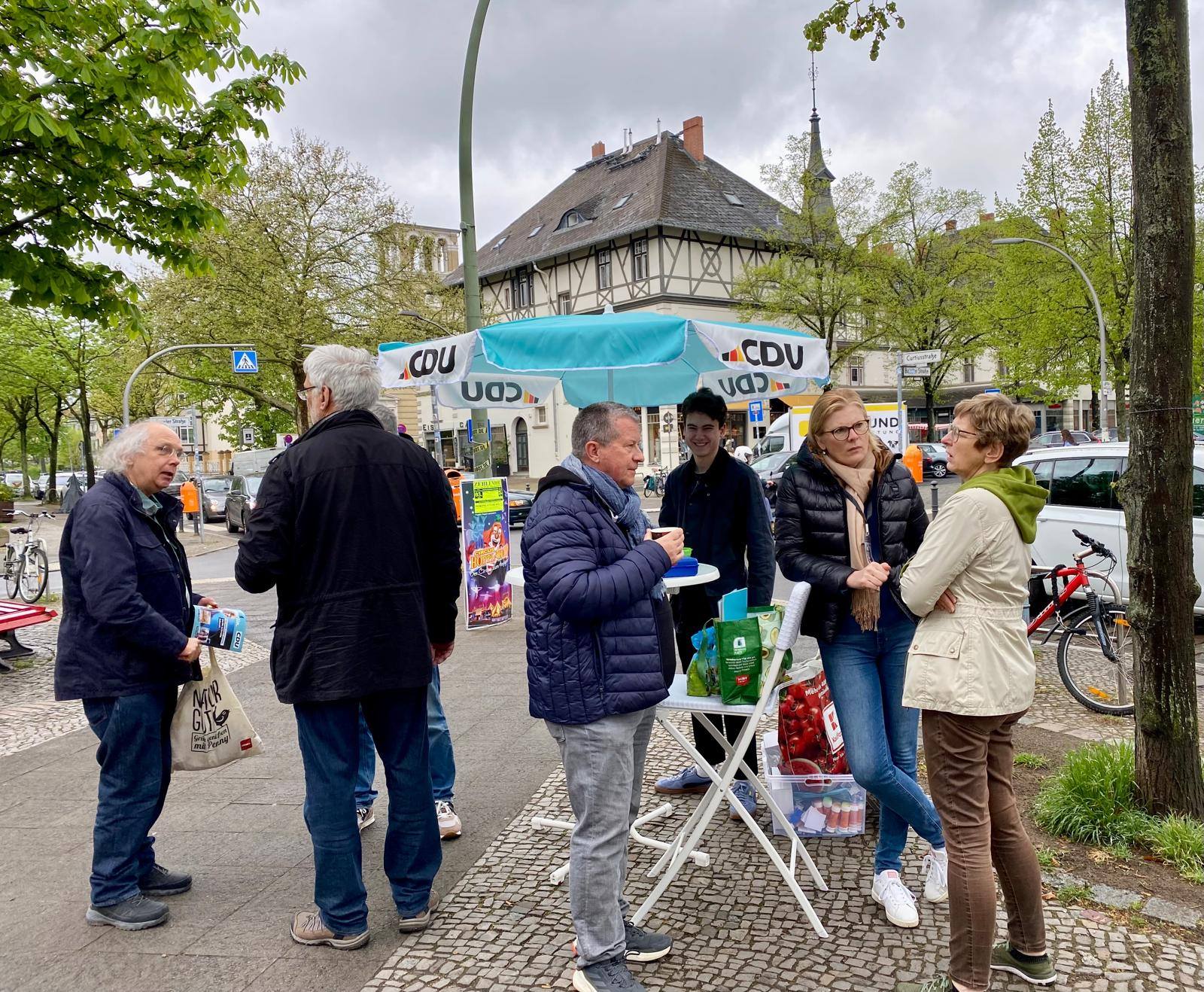 CDU Lichterfelde beim Wahlkampf-Canvassing im Schweizer Viertel. Tolle Stimmung am Stand. Gute Gespräche.