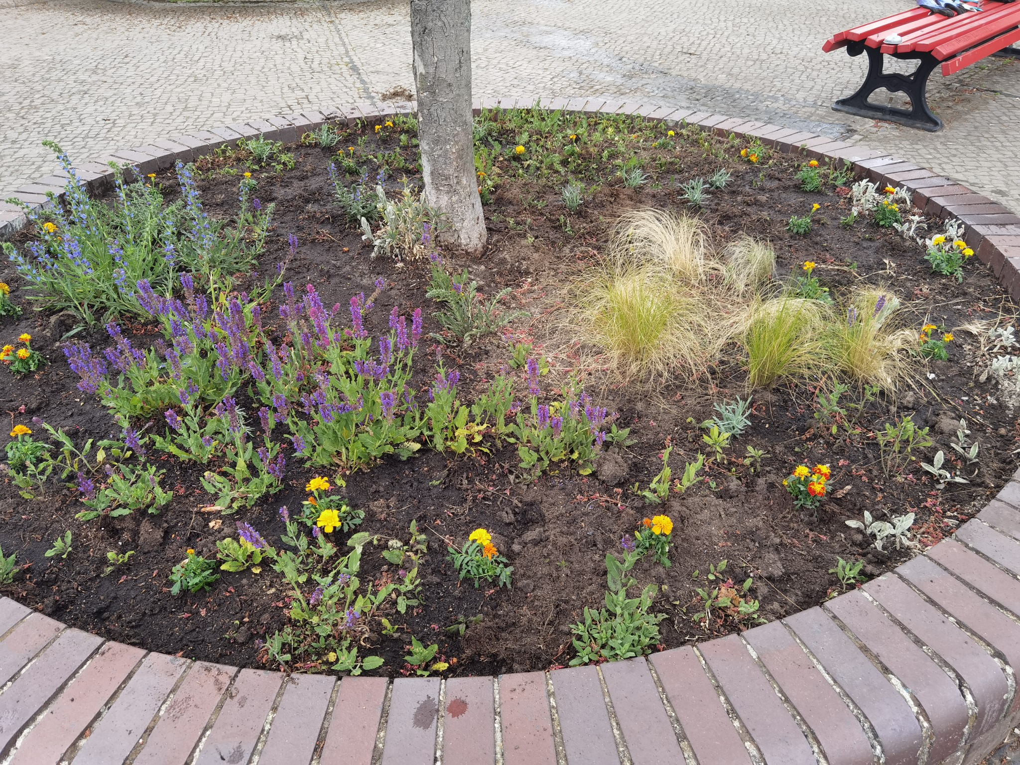 Wir machen den Platz schön für den Ostermarkt am nächsten Wochenende. 120 Stiefmütterchen bringen jetzt Farbe auf den Platz und wir sind gespannt, welche Stauden aus dem letzten Jahr wieder kommen...
