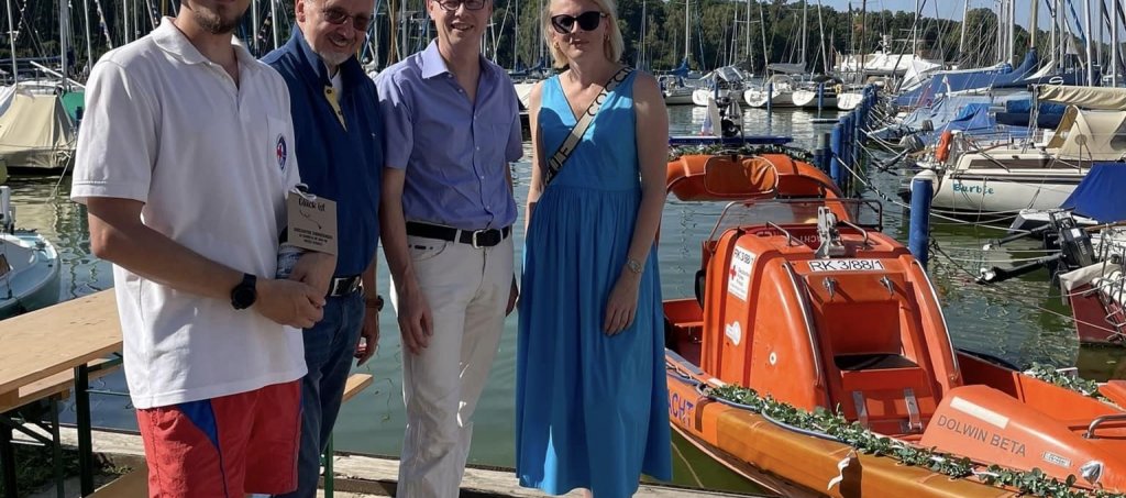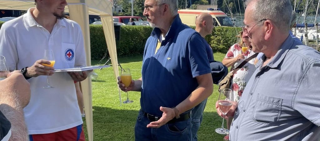 Heute ist Bezirkstag! Die erste Station bildete das Familienfest im Stadion Lichterfelde, danach ging es zur Bootstaufe der Wasserwacht des DRK zur Seglervereinigung 1903 Berlin.