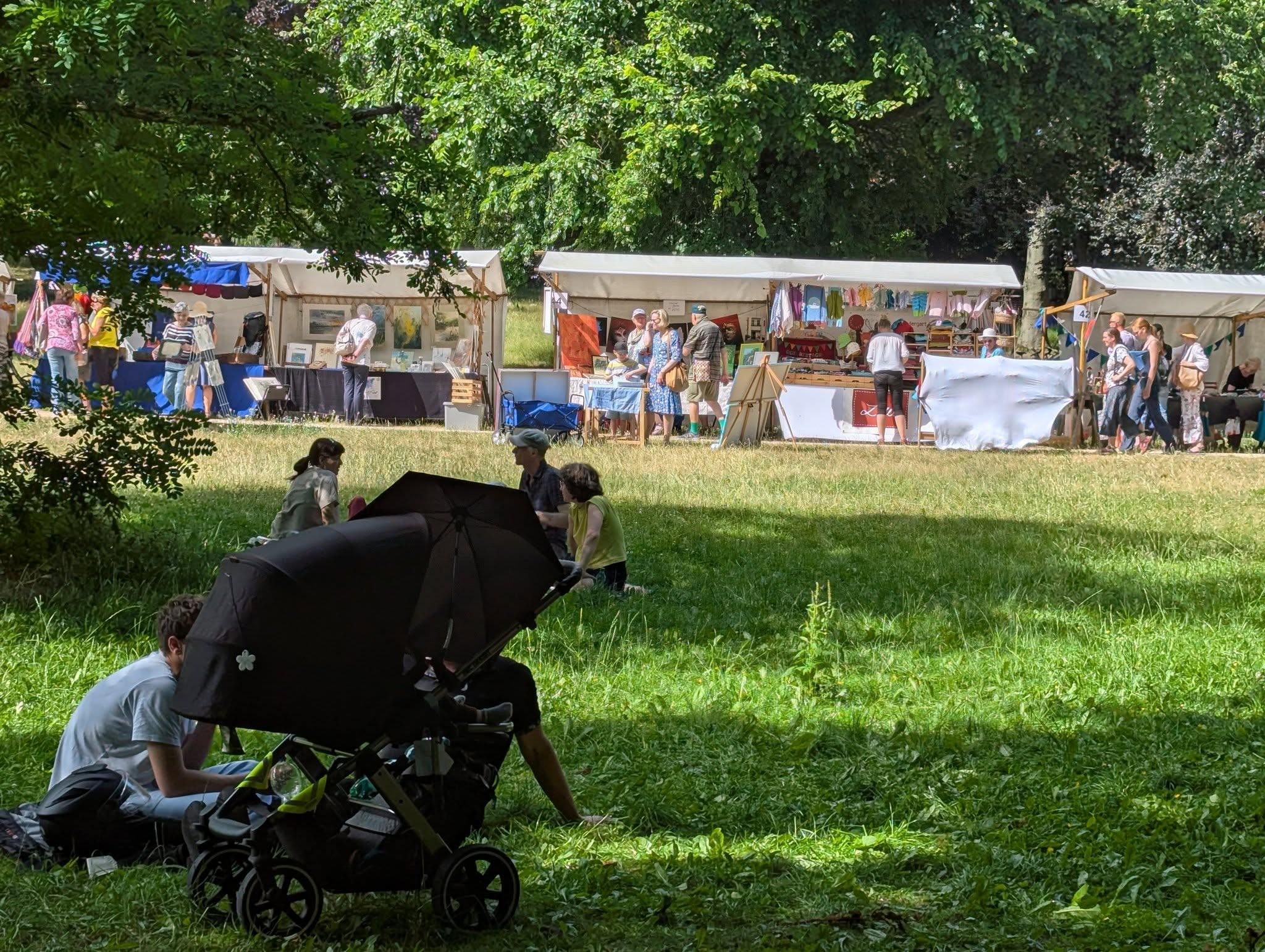 Eröffnung des 8. Kunstmarkts der Generationen am 24. Juni 2023: Einmal im Jahr verlässt der Schlosspark Lichterfelde sein beschauliches Dasein als Freizeit- und Erholungsfläche. An 80 Marktständen präsentierten Künstlerinnen und Kunsthandwerkerinnen was in ihren Ateliers, Werkstätten und Arbeitszimmern entstanden ist.