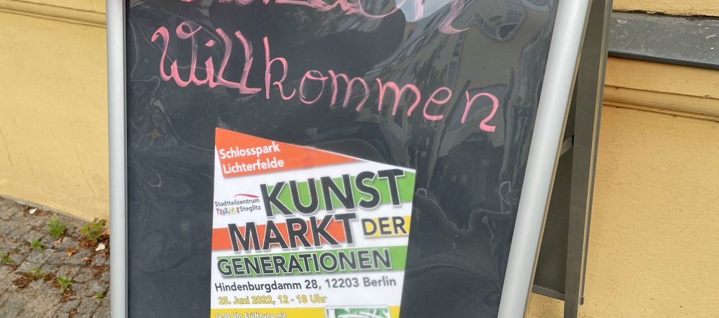 Am 25.06.2022 fand der 7. Kunstmarkt der Generationen im Schlosspark Lichterfelde statt. Viele interessante Stände: Ob Schmuck, Strickwaren oder Malerei, alles war vertreten.