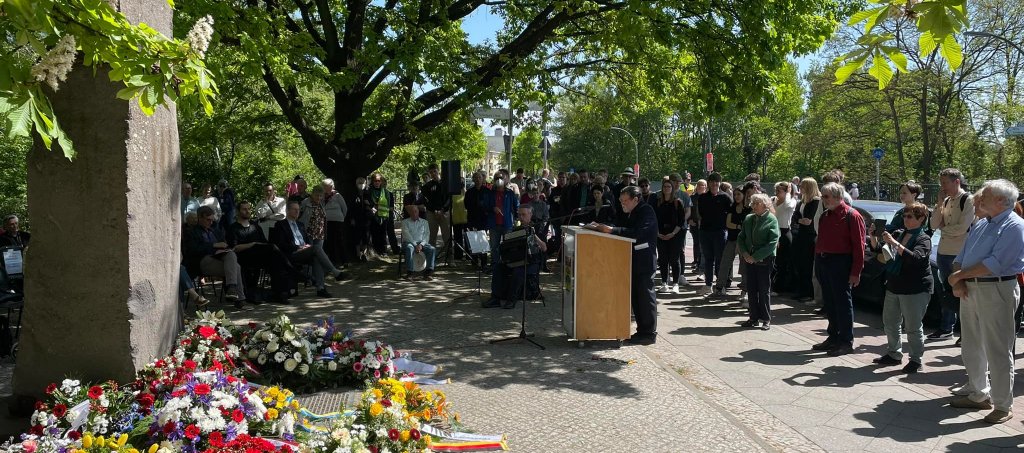 Gedenkveranstaltung und Ehrung der ehemaligen Häftlinge des KZ-Außenlagers Berlin- Lichterfelde an der „Säule der Gefangenen“. Es sprachen dieses Jahr u.a. Hans-Joachim Wiese, Nachfahre eines Täters (eines Angehörigen des Reserve-Polizei-Bataillons 101), und Zofia Pilecka, deren Vater von den Deutschen zu Kriegsbeginn erschossen wurde, sie ist zudem Witwe eines ehemaligen Zwangsarbeiters. Bewegende Worte!
