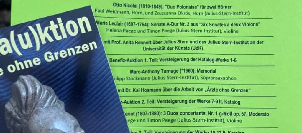 Nachbarschaftsfest auf dem Paulinenplatz bei strahlendem Sonnenschein - Es wurden Spenden für Ärzte ohne Grenzen u.a. bei einer kleinen Kunstauktion gesammelt. Für die musikalische Untermalung sorgte das Julius Stern Institut, Teil der Fakultät Musik der Universität der Künste Berlin.
